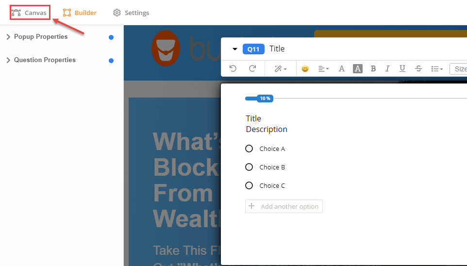 Once all the changes are accomplished, click on the Canvas button to go back to the Canvas area.