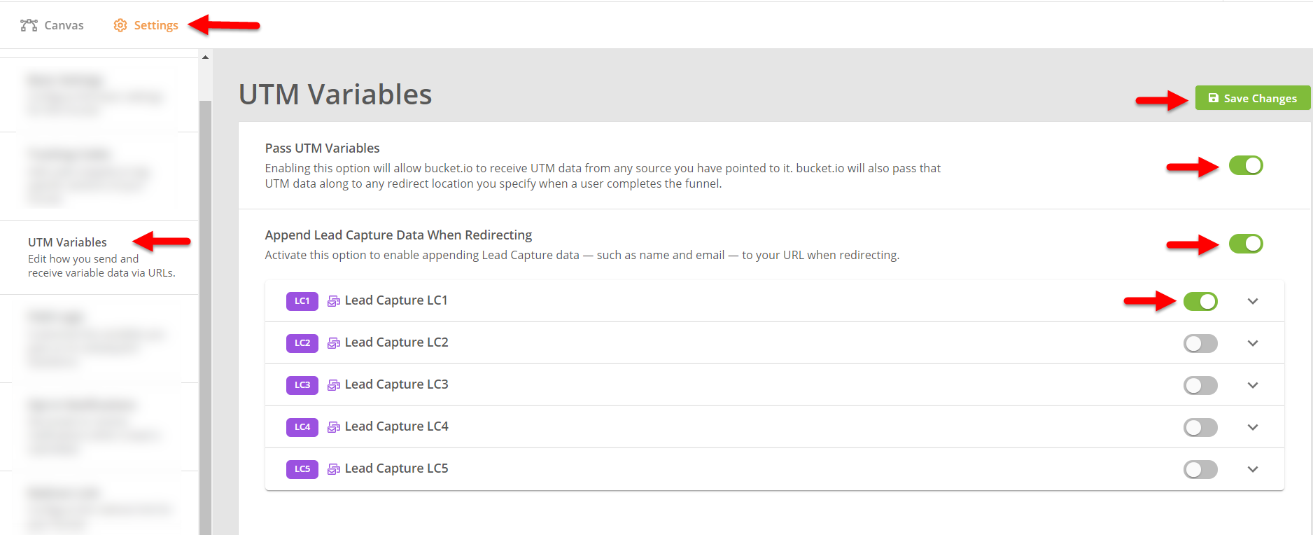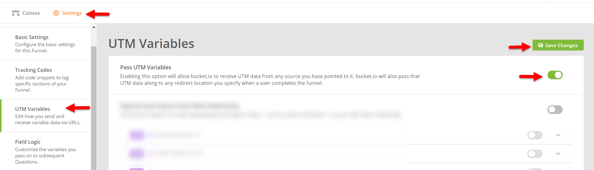 By activating this option, bucket.io will receive UTM data from any source. As well as the ability to pass along this data to other pages when/if using the external redirect at the end of the quiz.