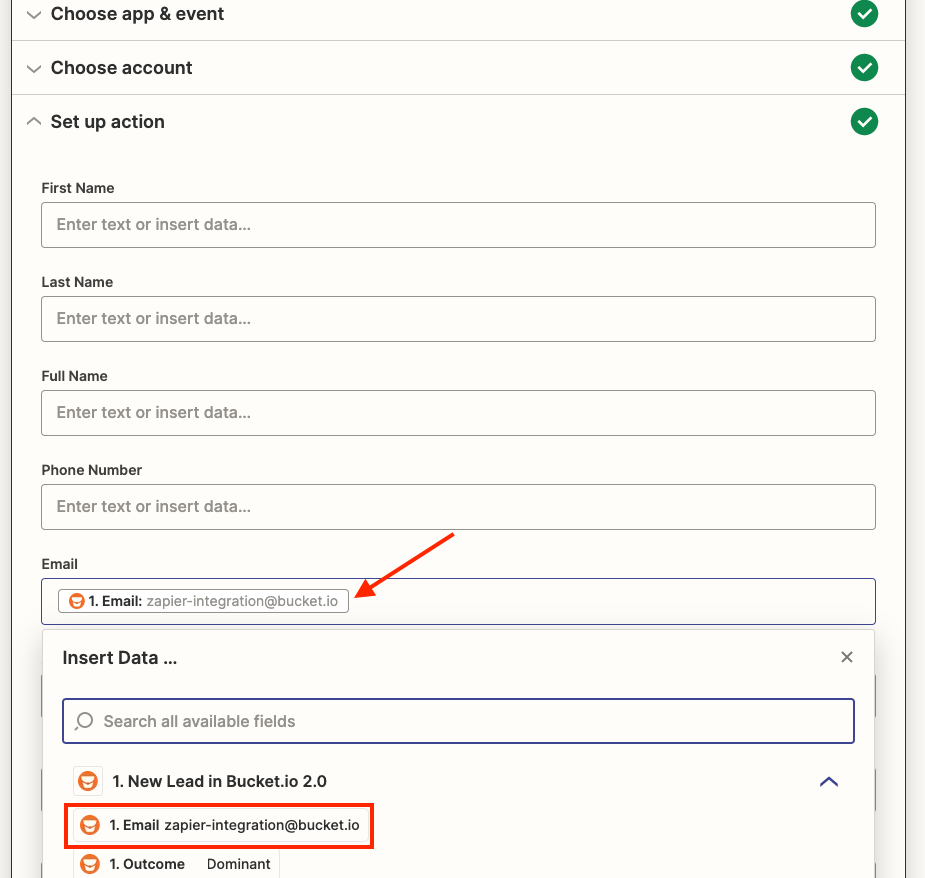 Zapier uses pre-existing fields from Lead Connector to place information such as name, email, segment/bucket, etc. If a field is not available in Zapier when filling out the integration form, it means that the field does not exist in LeadConnector yet.