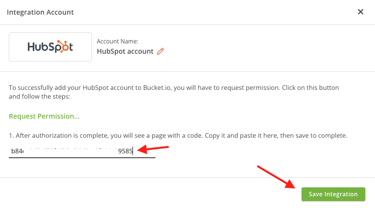 - Paste the copied authorization code into the designated section for HubSpot integration