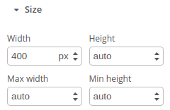 The Size section displays the first set of properties after the common properties above. These are dynamic for some components - the properties change if you resize the component by dragging the handlebars that appear when it is highlighted. Viewable by default, you can hide the Size section of the Builder by clicking the button to its left.